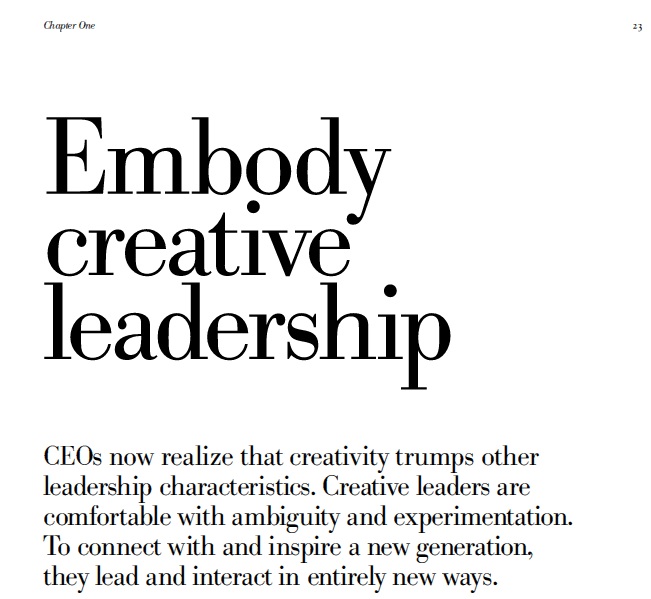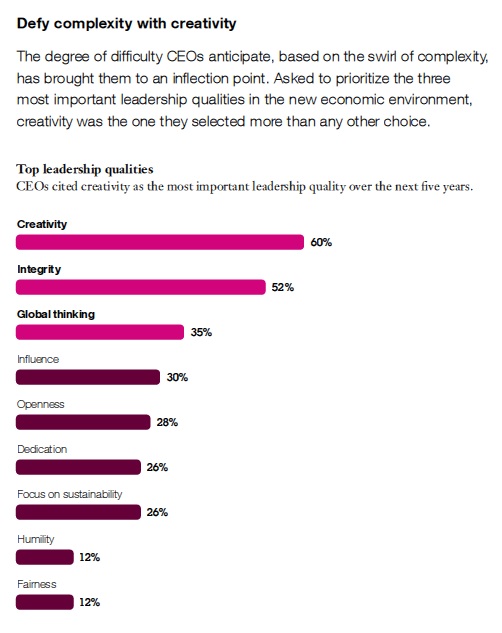 60% OF THE CEOS INTERVIEWED IDENTIFIED “CREATIVITY” AS THE NUMBER ONE LEADERSHIP QUALITY REQUIRED TO SUCCEED IN BUSINESS OVER THE NEXT FIVE YEARS.