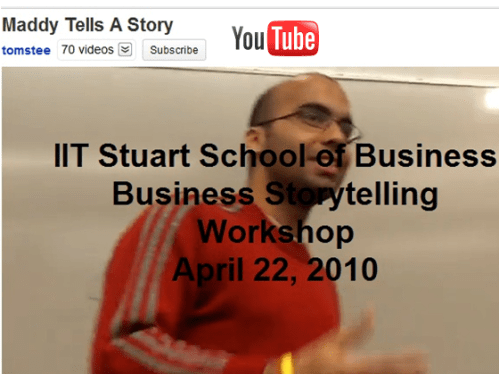Here’s one story (8 minutes) from Maddy, a finance student at IIT. It’s hilarious and has a real business moral!