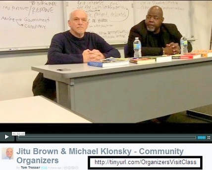 On April 11, 2012 two veteran community organizers visited a class I was teaching on social change. Jitu Brown is the Education Organizer for the Kenwood Oakland Community Organization and Michael Klonsky is a professor of education at DePaul University, leader of the small schools movement and working to stop public school closings. They spoke about how they got started in civic work, the lessons they learned and what they are fighting for. It’s a riveting and often moving 90 minutes. Watch it here.